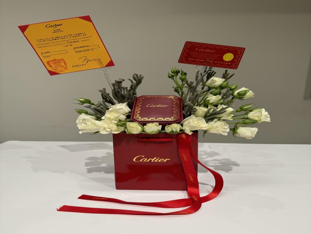 سلسال وحلق كارتير هاي كواليتي مع جميع ملحقاتها مع تشكيله من الورد الطبيعي