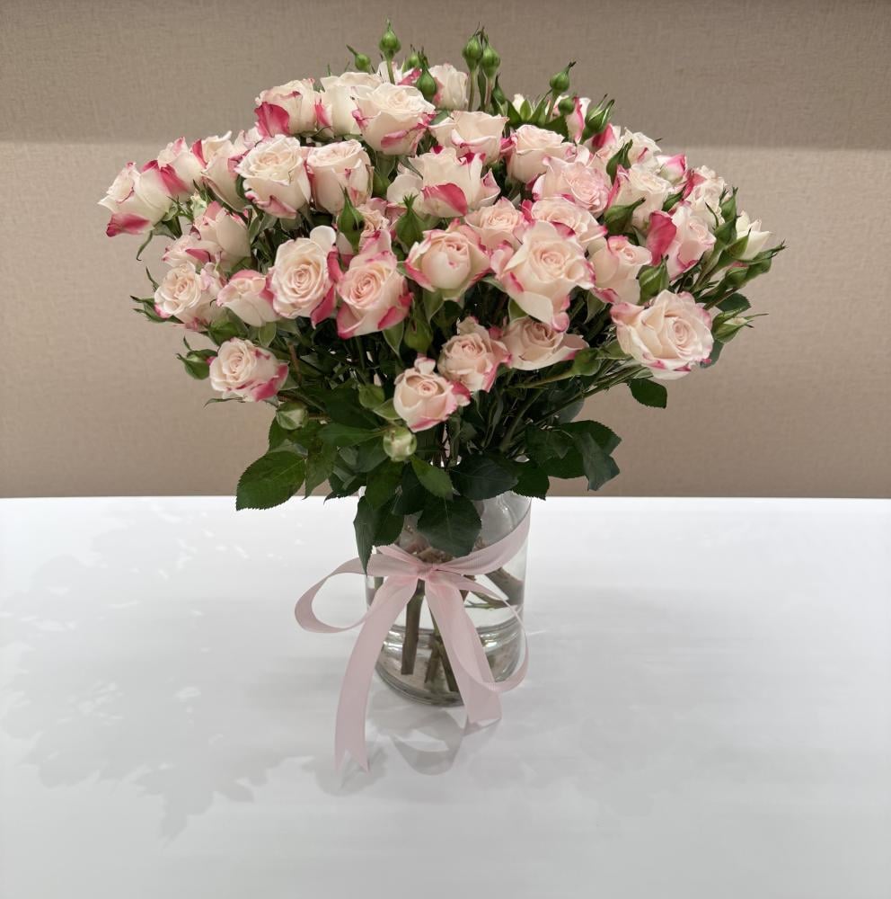 فازه زجاجيه مع ورد بيبي روز الطبيعي .