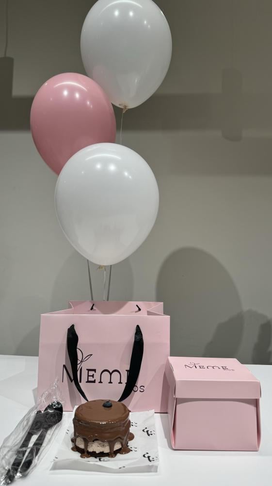 كيك يكفي لشخصين مع عدد 3 بالون قد يختلف نوع الكيك حسب المتوفر