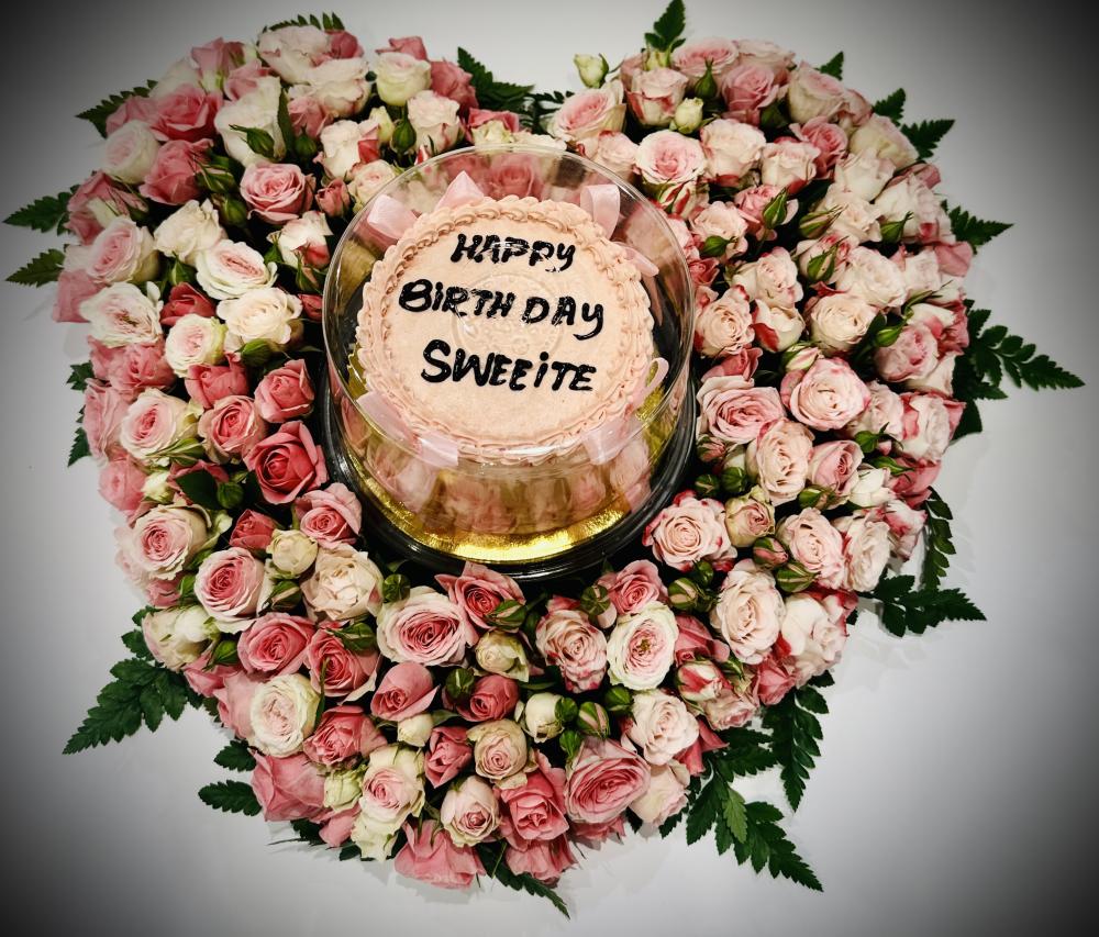 🍰🌸 كيك مع تنسيق ورد طبيعي – لحظات جميلة بطابع أنيق